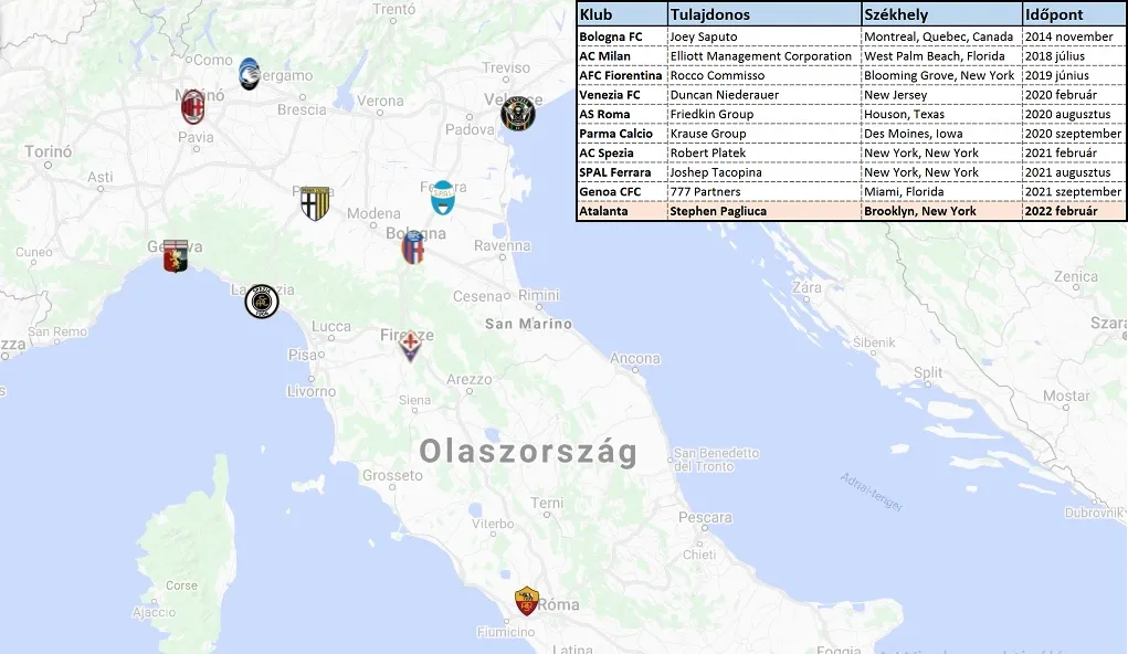 Az elmúlt években az észak-amerikai tőke elárasztotta az olasz labdarúgást. Az első 2014-ben a kanadai Joey Saputo volt, aki a Bologna FC 99,93%-t vette meg. Utána az AC Milan (2018), majd az ACF Fiorentina (2019) következett, hogy aztán a koronavírus időszakában újabb hat klubnál érkezzen meg az amerikai befektető. Az Atalanta már a tizedik a sorban. Azonban a többi egyesülettel szemben Bergamóban az előzetes információk alapján azt sejthetjük, hogy minden a megszokott módon folytatódhat, ami egyedi eset lenne.
