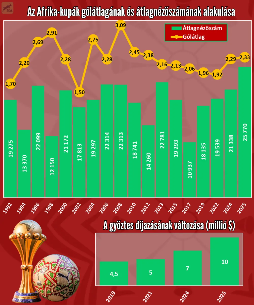 Az Afrika-kupa statisztikáit is leginkább a saját kontextusában érdemes kezelni, így azt is, hogy 121 gólall minden idők leggazdagabb termését hozta idén, amit persze részben a 2021-es mezőnybővítés indokol, ugyanakkor a meccsenkénti gólátlag is magasabb lett az elmúlt hat tornáénál még úgy is, hogy a legélesebb fázisban, az utolsó négy mérkőzésen már csak két gól esett. Az összes jegyértékesítés is meghaladta a még sohasem látott 1,2 milliós határt, az átlagnézőszám pedig átlépte a 25 ezret, ami persze így is fele az Eb vagy a vb helyszínek látogatottságának, de látványos előrelépés a jóval szűkösebb anyagi lehetőségekkel rendelkező afrikai szurkolók korlátozott mobilitását és a hatalmas távolságokat figyelembe véve.