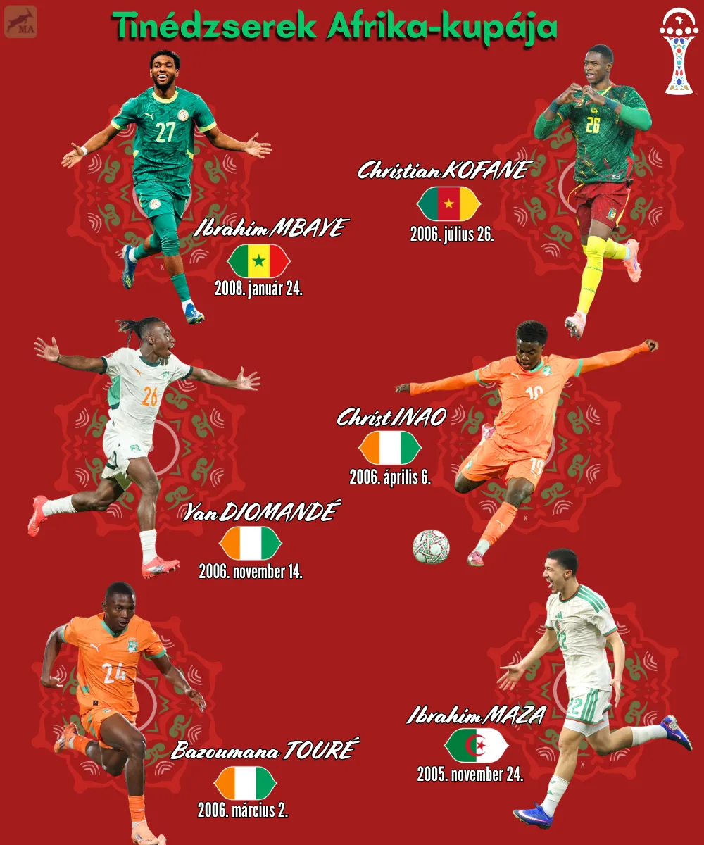 A képzeletbeli kispadunkra egyébként több ifjonc is odafért, mint a dél-afrikaiak 20 esztendős sziklaszilárd bekkje, Mbekezeli Mbokazi, a PL-ből már jól ismert Carlos Baleba és Amad Diallo (kicsit idősebb klubtársával, Bryan Mbeumóval együtt) vagy a torna egyik felfedezettje, a Mali középpályán rendkívül hatékony Mamadou Sangaré.