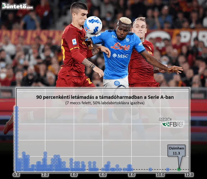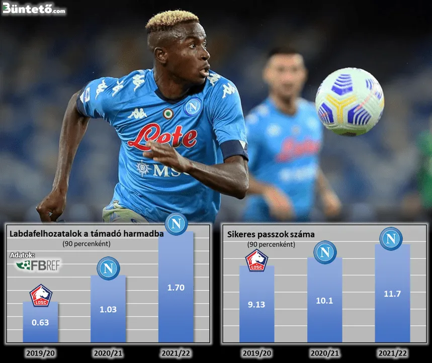 Mindehhez az is kellett, hogy Osimhen játéka is egyre érettebb legyen. Különösen Luciano Spalletti érkezése tett neki jót, aki már korábban is számos támadóból hozta ki a maximumot edzői pályafutása során. A nigériai ék a kapu előtt veszélyesebb, mint valaha, hiszen minden pályán töltött 90 percére 0,84 gól jut idén (öt a Serie A-ban, négy az Európa-ligában), a bajnoki találataival pedig hozza is az xG-mutató alapján elvárható helyzetkihasználást (5,1). 185 centiméteres magasságával a légipárbajok nem kifejezetten az erősségei, de találatai ötödét fejjel juttatja a hálóba.