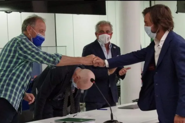 Pirlo előtt meghajolt a bizottság, miután sikeresen megvédte a dolgozatát (Fotó: FIGC)