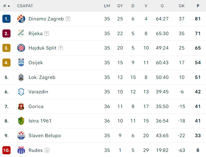 A horvát első osztályú labdarúgó-bajnokságban az erőviszonyok annyira megszilárdultak, hogy az egymást követő nyolcadik évben indulnak ugyanazok a csapatok az európai kupasorozatok selejtezőiben.