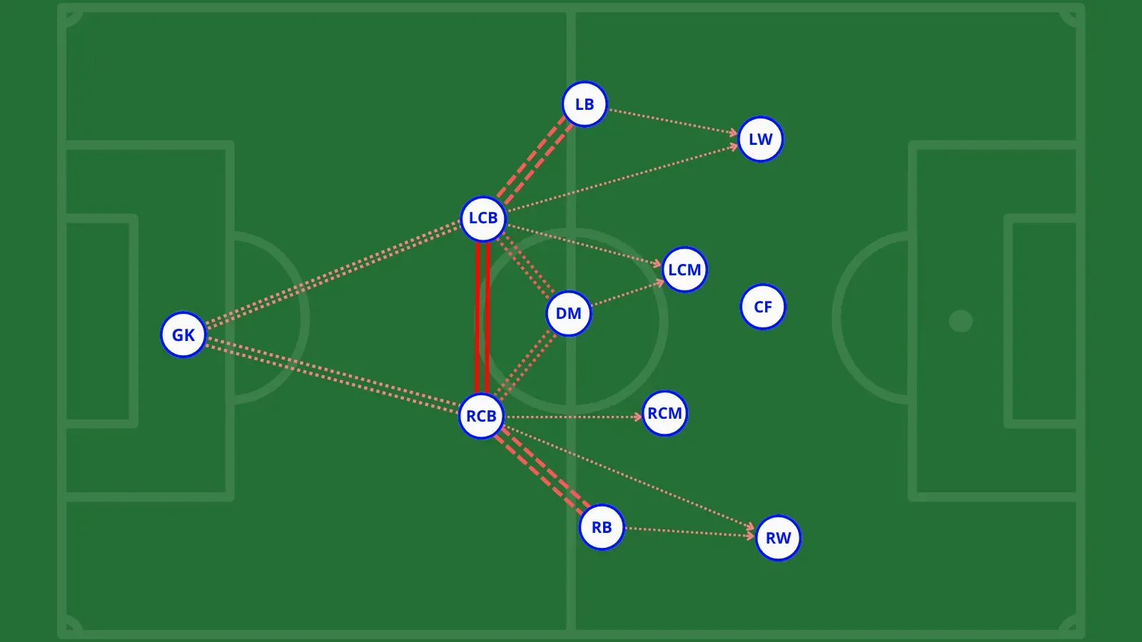 A labdakihozatal Farioli Portójának egyik leglátványosabb változása. Az építkezés már nem esetleges, hanem pozíciós logika mentén zajlik. A kapus és a belső védők aktív szereplők, a hatos rendszeresen visszalép a védők közé vagy mellé, hogy létszámfölényt alakítson ki az első fázisban. A szélső hátvédek gyakran befelé mozognak, miközben a két nyolcas magasabban, a félterületekben helyezkedik, így biztosítva a folyamatos kapcsolatot a támadósorral. A Porto tudatosan kerüli a felesleges hosszú labdákat, helyettük rövid passzokkal és jól időzített vertikális megjátszásokkal bontja meg az ellenfél letámadásának első vonalát.