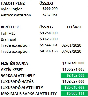 Jelen állás szerint lesz is rá és a maximális fizetésére sapka alatti hely, így annak esélye, hogy ezt bármilyen módon elrontsák, gyakorlatilag egyenlő a nullával. Egy nagyon picit bekavarhat, ha Bam Adebayo már most szeretné aláírni a 2021-től érvényes hosszabbítását, mert az 13 millióról várhatóan 30 millió környékére emelné az általa elfoglalt sapka alatti helyet, de szerintünk egyrészt Pat Riley ezt remekül tudja kezelni, másrészt Adebayo is elég értelmes, hogy lássa, ha gyűrűket akar (amiket Riley mutogat neki mindkét kezén), érdemes várnia az aláírással. Így is, úgy is maximumot fog kapni.