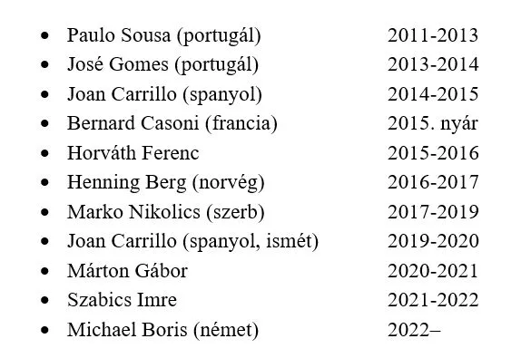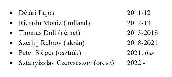 Az elmúlt 10 évben éppen 10 vezetőedzője volt a klubnak, és ebbe nem számoltuk bele a két beugrót, Szalai Tamást és Pető Tamást, akik egy-egy időszakban átmeneti megoldásként funkcionáltak két véglegesített tréner között.