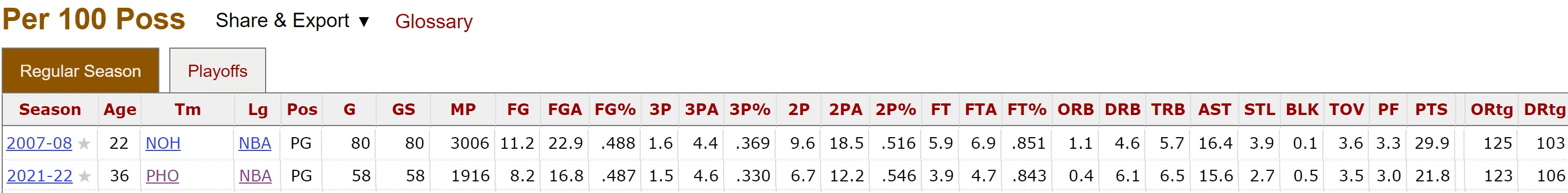 Ha megnézzük a 100 labdabirtoklásra levetített statisztikáit a 23., tehát a 2008-as, és az idei, 37. életévében lejátszott idényeire, arra a következtetésre jutunk, hogy valamennyit természetesen visszaesett, de nem annyit, mint azt az életkora sugallná. Perc alapon, Paul ma is MVP teljesítményre képes, amit nem gondoltunk volna a rosszul sikerült 2018–2019-es, utolsó Houston Rocketsnél lejátszott éve után. Amikor kell, Paul top 10-es teljesítményt tud nyújtani, és még ma is two-way játékos, azaz nemcsak támadásban, de védekezésben is képes az extrára.