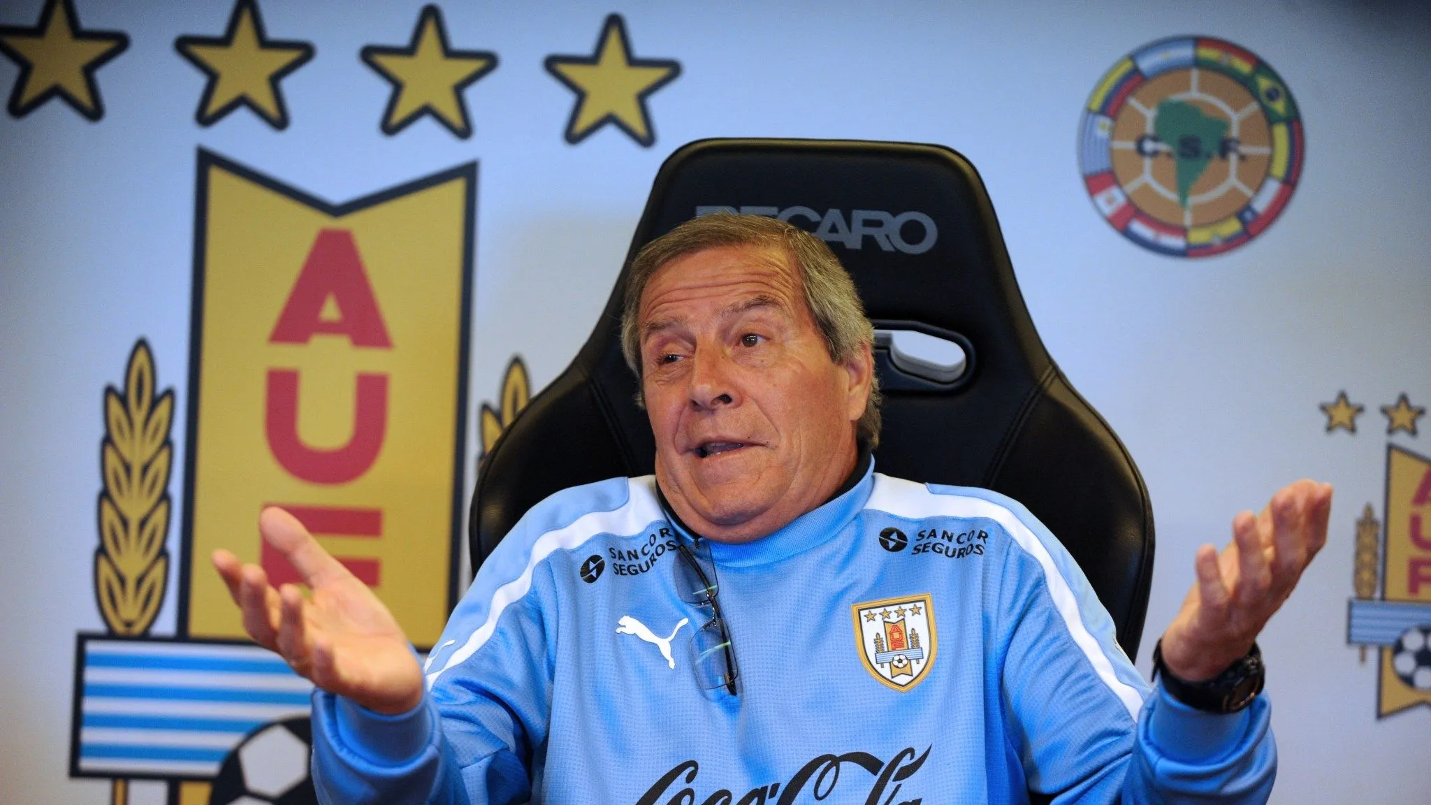 A múlt hónapban már a 74. születésnapját ünneplő Tabárez összesen 213 alkalommal vezette csatába az uruguayi válogatottat, amellyel világrekordernek mondhatja magát. 2006 óta tartó, második regnálása alatt 179 mérkőzésből 90-et nyert meg a csapat 43 döntetlen és 46 elvesztett találkozó mellett. A Maestro hat Copa Américán és négy világbajnokságon irányította a Celestét. 2012-ben a labdarúgásért tett szolgálataiért cserébe megkapta a FIFA legmagasabb fokozatú érdemrendjét.