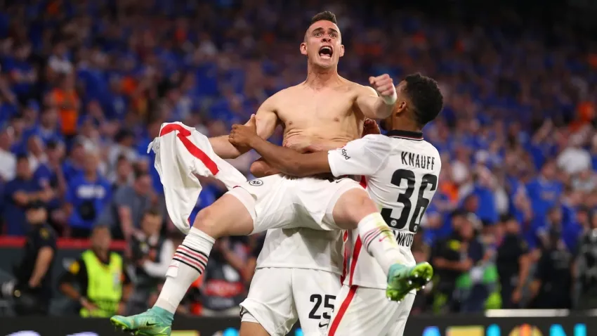 Az Eintracht Frankfurt utoljára 1980-ban nyerte meg az UEFA-kupát, idén pedig hősies menetelés végén az Európa-ligában végzett az élen. A Bundesligában csak a 11. helyen záró csapat az egyenes kieséses szakaszban sorrendben a Real Betist, az FC Barcelonát és a West Ham Unitedet ejtette ki, a döntőben pedig tizenegyesekkel bizonyult jobbnak a Rangersnél. Az Eintracht legeredményesebb játékosa a japán Kamada Daicsi lett öt góljával, de a csapatnál az első idényét töltő Rafael Santos Borré ugyancsak főszerepet vállalt a kupasorozatban szerzett négy találatával, hiszen a fontos gólok mestere lett, miután betalált a negyeddöntő visszavágóján, az elődöntő második mérkőzésén és a fináléban egyaránt.