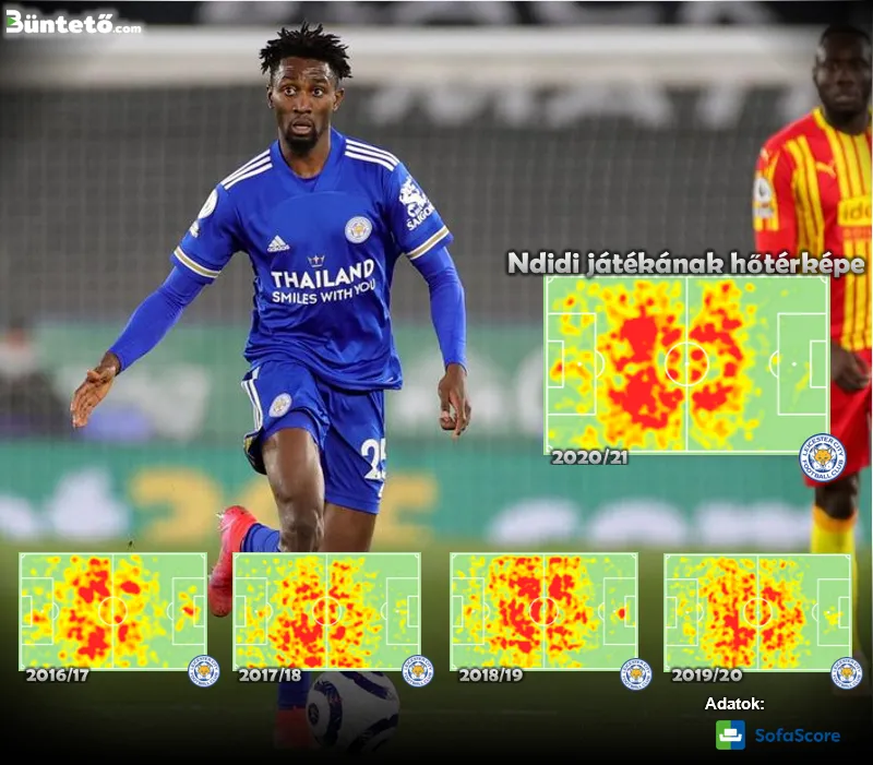 Az U20-as válogatottban még középhátvédként szereplő Ndidi korábban sem sokat fordult meg az ellenfelek kapuja előtt, ez idén még kevésbé jellemző rá. Ahogy a játékát illusztráló hőtérképeken is látszik, idén még óvatosabb szerepet szán neki edzője és kevesebbet fordul meg a támadóharmadban vagy a tizenhatoson belül, mint az előző években.