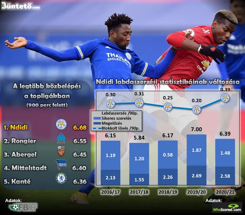 Azt viszont jó barátjához hasonlóan Ndidiről is elmondhatjuk, hogy a fejpárbajok cseppet sem az erősségei, ami alighanem közrejátszik abban is, hogy a védelemből a középpályára került. Idén már csak 4,05 alkalommal keveredik légi csatába, igaz, 183 centiméteres létére ezeknek 63%-ból sikerrel jön ki. Egy középhátvédtől azonban ez túl gyenge mutató lenne és voltaképpen védekező középpályásként is negatívumként értékelhető.