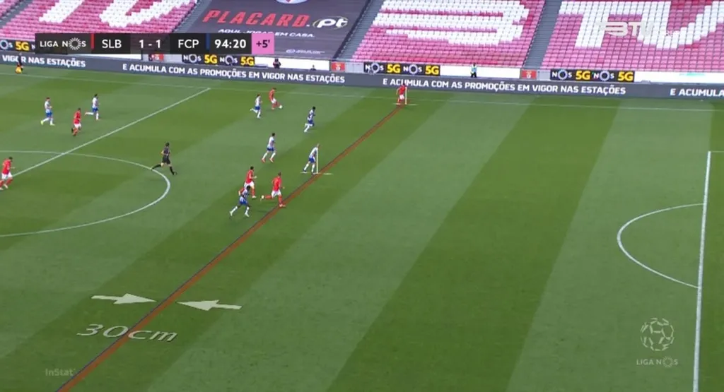 Külön érdekesség volt, amit személy szerint a legnagyobb örömmel látnék más bajnokságokban is, hogy a lesgyanús szituációknál nem a vonalazás folyamatát mutatták meg, hanem a kész állapotot, valamint a két játékos gólszerzésre érvényes kapuhoz legközelebbi testrésze közt mekkora a különbség. Az első félidő ráadásában 19 centin, a második játékrész hosszabbításában pedig 30 centin múlott a Benfica előbb büntetője, utóbb gólja. [/su_note]
